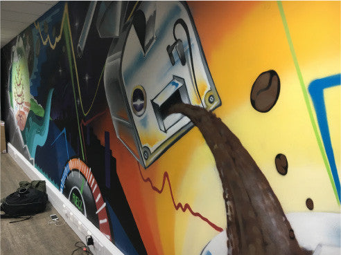 James from Clifton Coffee approached me as he wanted someone to design and paint a mural that mapped out the journey of their product, so we worked tightly together, as I learnt the ins and out of their business, and while drinking premium coffee we formulated a design.